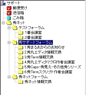 コミュニテックス用のフォルダを設定する場合は、まず最初に「アカウント名」の下に「コミュニテックス」という名前のグループフォルダ を作成して、その下に各フォーラム名のグループフォルダを作成して、フォーラムフォルダのの下に会議室名のついた メールフォルダを作成すると良いでしょう。
