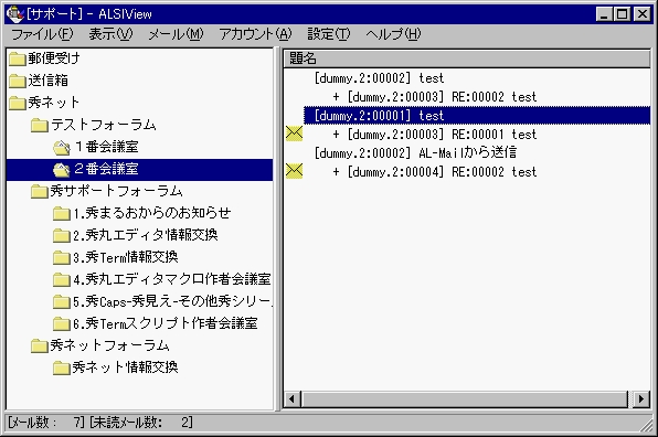 AL-Mail32 には、受信メールをコメントツリーで表示する機能はないのですが、AL-Mail32 の支援ソフトとして 「スレッドビューア for AL-Mail32」というフリーソフトウェアを使用することで、AL-Mail32 で受信したメール をコメントツリー表示することができます。◇ その他