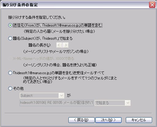 秀丸メールの簡単振り分け設定はウィザード形式になっているので各種情報を順番に設定していくことで振り分け 設定が簡単に行うことが出来ます。