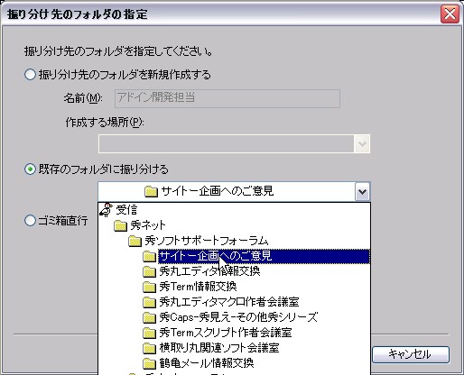 ここで新規にフォルダを作成することも出来ますが、今回は既存のフォルダへ振り分けるように設定 しています。