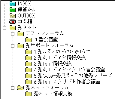 ここでは、「秀サポートフォーラムの2番会議室の秀丸エディタ情報交換」の振り分け設定を行っています。 「秀サポートフォーラム」のフォーラム名は「hidesoft」で「秀丸エディタ情報交換」会議室の会議室番号 は、2 なので「比較対照文字列」の部分は、「hidesoft.2@maruo.co.jp」となります。